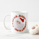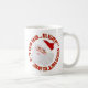 Joyeux Noël Père Noël Face-est un design graphique numérique. Dessin/peinture numérique du visage Père Noël. Il porte des lunettes dorées et un casquette de Noël rouge et blanc. Il a une barbe pleine, une moustache et des joues roses roses. L'arrière - plan derrière Père Noël est un arrière - plan étincelant verdoyant. Texte rouge décoratif taillé dans l'or : HO HO HO...Joyeux Noël et il tourne autour de Père Noël visage . Le père Noël et le texte sont des deux côtés de la tasse à café.