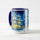Joyeux Noël Pretty Blue Christmas House coffee mug.