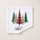 Joyeuse serviette de bain de Noël dressée avec des arbres de Noël rouges et noirs, verts et noirs et empreintes de léopard. L'ensemble comprend la serviette de bain, la serviette et le linge de toilette.