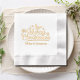 Joyeux Noël Script Entreprise Personnalisée Nom d'entreprise Real Foil Napkins contient le texte "Joyeux Noël" dans une élégante typographie de script accentuée avec des flocons de neige et de houx avec votre nom d'entreprise personnalisé ou le texte ci-dessous en papier journal. Parfait pour les fêtes de Noël d'entreprise, les cocktails d'entreprise et les fêtes de fin d'année. Créé par Evco Studio www.zazzle.com/store/evcostudio