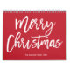 Joyeux calendrier mural simple rouge et blanc avec texte changeable sur la page de couverture et photos changeables pour chaque mois de l'année. Photographie © Storytree Studios, Stanford, CA