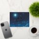 Joyeuse carte de Noël dans la commodité d'une carte postale. Le devant est orné d'une belle étoile de Noël et d'un véritable papier d'aluminium. Texte personnalisé à l'avant et à l'arrière de la carte postale. Beaucoup d'espace pour votre salutation personnelle. Un appel majestueux. Belles couleurs bleu et or. Utilisez le modèle pour créer votre propre carte postale de feuille d'étoile de Noël.