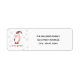 Si mignon ! Cette marque d'adresse de retour de vacances est dotée d'un flamant aquarelle avec chapeau de Santa, arborant une jolie petite cravate arc avec cloches et flocons de neige. Un design festif rouge et blanc qui dit "Joyeux Noël" sur le devant en écriture typographie, personnalisée avec votre nom et adresse à droite. Tuxi's Mom Designs, tous droits réservés.