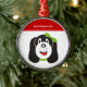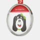 Joyeux ornement personnalisé de chiot idiot, avec un chiot idiot avec arc vert sur la tête.