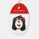 Joyeux ornement personnalisé de chiot idiot, avec un chiot idiot avec arc rouge sur la tête.