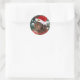 Cet autocollant mignon présente une image d'un adorable chien labradoodle chocolat portant le chapeau du Père Noël, assis près d'un arbre de Noël décoré, et les mots "Joyeux Pawlidays".