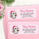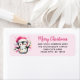 Ces étiquettes d'adresse de retour rose unique comprennent le "Joyeux Noël" en caractères de caractères de script et un mignon manchot avec des lumières de Noël. Le modèle facilite la saisie de votre adresse.