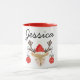 Cette tasse de rennes personnalisée fait le cadeau de Noël personnalisé parfait. Il présente un visage de rennes mignon avec votre nom. Ce chocolat chaud ou cette tasse à café est parfait pour vos enfants, petits-enfants ou amis. Donnez comme un Père Noël secret ou un cadeau de bureau.