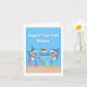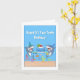 Faites un splash avec cette carte de 10e anniversaire de mâchoire ! Un joyeux petit requin prend une bouchée ludique d'un chiffre vibrant "10" perché sur un gâteau d'anniversaire de l'océan lumineux. Deux requins mousseux équilibrent le gâteau sur un stand de type surf, le tout dans une scène sous-marine fantasque remplie de bulles ludiques et de créatures marines mignonnes comme un poulpe souriant, des poissons clowns et des tortues de mer.