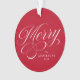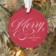 Élégant ornement de Noël avec "Joyeux" sur le devant dans un script de calligraphie blanc superposé avec un arrière - plan rouge. Personnalisez le devant de l'ornement en ajoutant votre nom et l'année en lettres blanches. Le dos de l'ornement affiche votre photo.