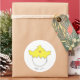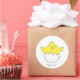 Cet autocollant est imprimé avec un petit poulet à la main, heureux et partiellement haché.
