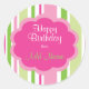 Happy Anniversaire Sticker rose et vert Stripe, juste Ajouter un nom