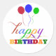 Stickers Joyeux Anniversaire Ballons de fête colorés avec différentes lettres colorées pour le mot "Joyeux Anniversaire" dans les couleurs primaires. Le mot "happy" est dans une police d'écriture manuscrite amusante et le mot "anniversaire" est en caractères gras. Idéal pour les fêtes d'anniversaire pour les enfants.