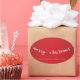 Joyeux autocollants rouge et blanc ovale de Noël avec texte changeant