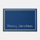 Tapis de porte avec un arrière - plan bleu profond, des bordures blanches et dorées entourant le tapis de porte et l'expression "Joyeux Noël" dans un texte optimisé en blanc près du fond du mat de porte. Customisez cet objet ou achetez tel quel.