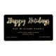 Happy Holidays Chic Black and Gold Script Hand Lettering with Faux Sparkles, Élégant Étiquette de livraison pour la saison des fêtes de Noël.
