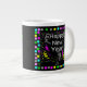 Vous pouvez maintenant admirer mon dessin, "Joyeux voeux du Nouvel An" ajouté sur cette tasse jumbo. Le texte dit, "Bonne année !" avec une touche supplémentaire de confettis arc-en-ciel et de serpentins de fête et de pois arc-en-ciel pour rendre cette tasse jumbo agréable pour le Nouvel An.