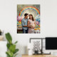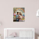 his heartwarming wall art captures a joyful baby shower scene featuring a cheerful pregnant woman and her husband standing by a beautifully decorated table filled with pastel-coloured treats and gifts. They are surrounded by soft clouds, delicate flowers, and gentle stars under a vibrant rainbow and sunshine decor. The mother-to-be, smiling and holding a small teddy bear, radiates happiness as she stands close to her supportive husband. The watercolor effect and soft pastel hues create a warm, inviting atmosphere with a whimsical touch, making it an ideal piece for nursery decor or a special gift celebrating parenthood.