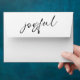 Joyful Black Script Return Name Address White. For 5 x 7” cards and invites. Easily personalise with your name and return address. Joyful is in a modern playful set script in gold on the back flap which can be changed to another colour if you so wish via the Edit further option where you can also make other edits as required.