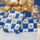 Joyful Blue Typography Christmas Tree Pattern Wrapping Paper