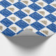 Joyful Blue Typography Christmas Tree Pattern Wrapping Paper. Blue and white background pattern with a simple Christmas tree. White Merry, Happy, Jolly typography.