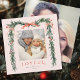 This elegant photo holiday square card features a watercolor pine branch frame (border) adorned with red ribbons, holly berries, and botanical greenery, along with an additional photo on the back. Send Christmas cheer to family and friends.