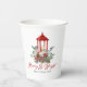 Modern watercolor flowers and red holiday lantern design for Christmas party paper cups with custom red typography. Elegant, joyful holiday vibe.
