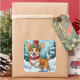 Joyful Corgi Dog Bouncing in Snow with Pom Pom Square Sticker