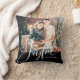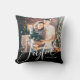Joyful | Elegant Script and Photo Christmas Black Throw Pillow