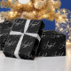 This elegant Christmas holiday wrapping paper says "Joyful" in modern white script calligraphy on a dark black background.