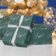 This elegant Christmas holiday wrapping paper says "Joyful" in modern white script calligraphy on a festive green colour.