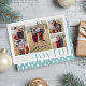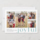 Share holiday greetings with these rustic chic Christmas photo cards featuring five favorite photos in a collage layout (4 square and one portrait/vertical). "Joyful" appears along the bottom in modern lower case lettering, with your custom holiday greeting, family name, and the year aligned at the left. Cards reverse to a festive pine tree pattern in coordinating colors.