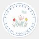 A fun floral, warm weather design featuring a whimsical garden. Residing in the garden is a pale, blue bird with an assortment of flowers in red, pink and yellow.