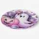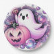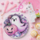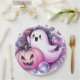 A playful and joyful lil ghost admiring a tiny pumpkin!