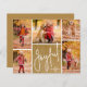 Small 4.5" x 5.6" semi-gloss 110 lb. paper holiday photo cards feature your five favourite photos, your names and the word Joyful in chic lettering on a sparkly gold pattern. Be sure to double-check your order before adding it to your cart as what you see on the screen is what will be printed. The Live Design Service can help you with your design layout if needed.