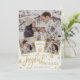 Joyful Gold Frame Modern Script 3 PHOTO Greeting Holiday Card.