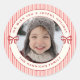 Joyful Holiday Red Bow and Stripes Custom Photo Classic Round Sticker