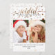 This JOYFUL Tidings design combines a traditional theme with modern knock-out / transparent text effect -- you determine the the colour of the script typography "JOYFUL, the snowflakes, and sparkles by changing the right side image! Make them bright or subtle -- it's entirely up to you! It's not only fun, but it ensures that the design's printed accents and typography will match your photo. The line of text beneath "JOYFUL" -- "Tidings & New Year Blessings" -- may be customized, as may the closing signature block and date. Make sure to peek at the reverse side too, where your names appear a second time as the creator of this JOYFUL holiday greeting!