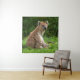 A captivating image capturing a hyena seated gracefully in a lush bed of green grass, its expression adorned with what appears to be a delightful smile.