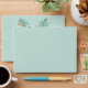 Light blue envelopes with a pretty floral sprig on the outside flap, inside has a branches and berries laurel wreath that reads Peace & Joy.