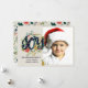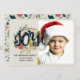 Christmas holiday photo card with a beautiful holiday floral, leaves, pears, and berries design wreath with decorative text that reads JOY! This photo card is easy to customize with your photo, family name, first names, and the current year. This beautiful Joyful Joy Christmas holiday card is perfect for sending to friends and family. The back is pale grey with the same decorative evergreen sprigs, flowers, pears, berries, and leaves as the front, with an area to add the current year date!