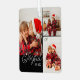 Joyful Minimal Photo Collage Present Ribbon Black Metal Ornament