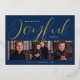 Joyful Modern Blue and Gold Script Photo Collage Foil Holiday Card