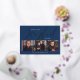 This chic custom "Joyful" Christmas holiday card features a unique layout and minimalistic design with a 3 photo spaces on the front and modern and elegant script typography in real gold foil with navy blue background colour. Personalize the simple last name or family signature and the year, and choose to include an additional message on the back of the card. An additional photo space is also included on the back. Photo credit: Livia Plaskey Photography @liviaplaskeyphotography