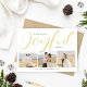 Joyful Modern Gold Script Photo Collage Foil Holiday Card