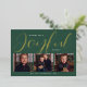 Joyful Modern Green and Gold Script Photo Collage Foil Holiday Card