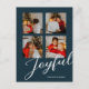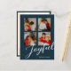 Joyful Modern Minimalist Blue Script 4 Photo Holiday Postcard