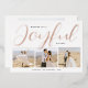 Joyful Modern Rose Gold Script Photo Collage Foil Holiday Card