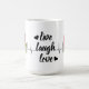 Start your day with positivity and joy with this classic white mug, featuring the timeless quote "Live, Laugh, Love." This simple yet inspiring design serves as a reminder to embrace life’s precious moments with a joyful heart. Crafted from high-quality ceramic, it’s perfect for sipping your morning coffee, tea, or any of your favourite beverages. Whether for yourself or as a thoughtful gift, this mug encourages you to live fully, laugh often, and love deeply, every day. A charming addition to any kitchen or office space.