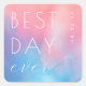 This wedding sticker features a soft, watercolor gradient transitioning from pink to blue, creating an ethereal and dreamy effect. The design includes elegant typography with "BEST DAY" in bold letters and "ever" in a cursive script, conveying a joyful and celebratory mood. Its minimalist style focuses on simplicity and emotional impact, making it perfect for commemorating special occasions like weddings. The use of vibrant colours and clean fonts ensures readability while maintaining aesthetic harmony, ideal for adding a touch of sophistication to your event.